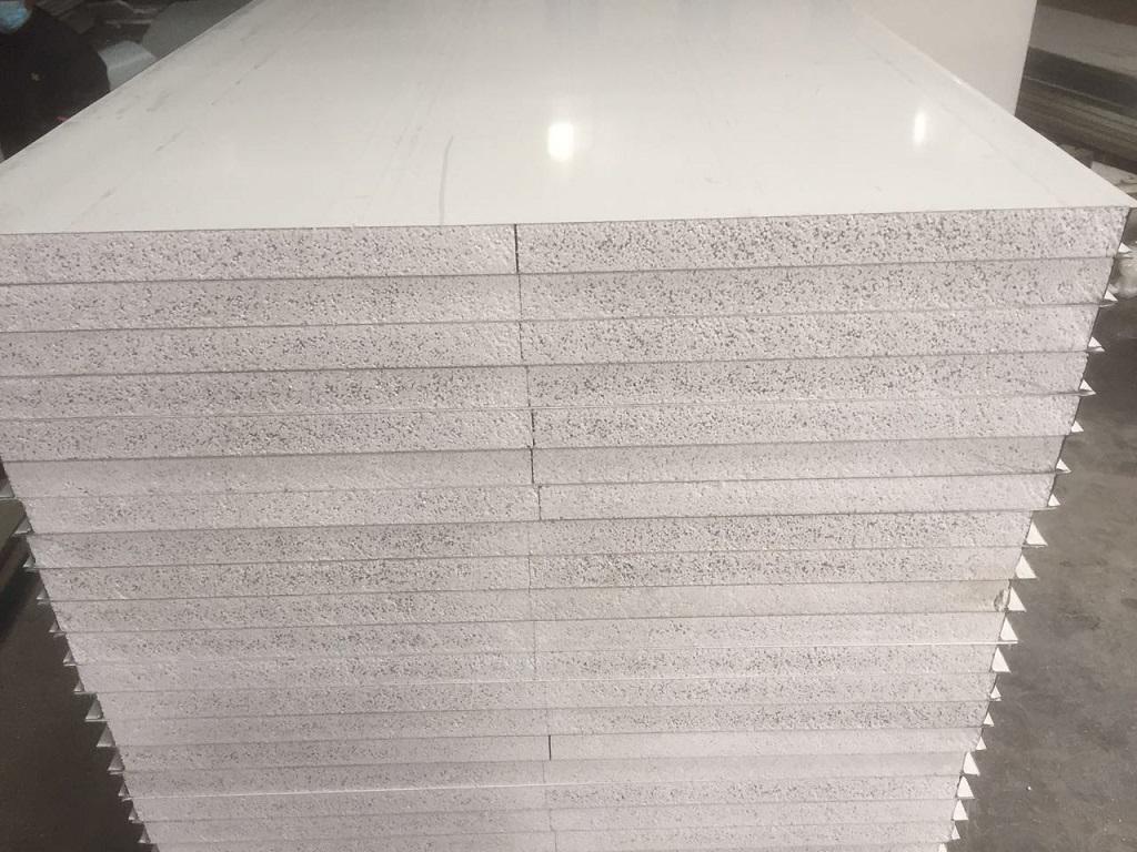 硫氧鎂夾芯板充分發(fā)揮了硫氧鎂復(fù)合材料的獨(dú)特性能,在防火,防潮,防脫膠,高強(qiáng)度,保溫,隔熱,吸音等方面有著顯著地優(yōu)點(diǎn)及功效。 生產(chǎn)工...